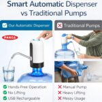 - ⚡ Fast Dispensing with Auto-Off Feature – Automatic Water Dispenser Pump with Tap Featuring an upgraded high-efficiency motor, this electric water pump can pump up to 2 Liters of water per minute, allowing you to fill bottles, glasses, or cooking pots quickly. The automatic shut-off feature dispenses 1.5L in 60 seconds, stopping automatically to prevent spills or overflows. This feature makes it especially safe and user-friendly for elderly users and children.