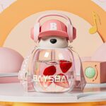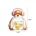 Bear Water Bottle – Cute Design with Headphones & Strap