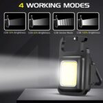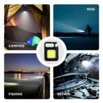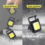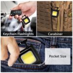 - 🌟MULTI-FUNCTIONAL PORTABLE DESIGN: The small keychain flashlight have 3 Lighting Modes, with SOS function, and square design. The lap flashlight top is a climbing buckle design can be hung in any position you want to, and with a bottle opener function to help you open a variety of metal lids in the field, the back is 180 ° rotatable bracket, the COB light put on the ground can also be used steadily.