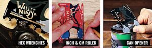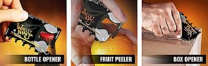 - 18 TOOLS IN 1, CREDIT CARD SIZED TOOL: Wallet Ninja Multitool is your everyday tool that easily fits in your wallet or pocket. A multi-functional tool that functions as a Screwdriver, Bottle Opener, Box Opener, Can Opener, Cellphone Stand, Eyeglass Screwdriver, Beer Opener, Fruit Peeler, Hex Wrench & Nail Puller.