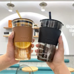 Reusable Glass Coffee Sipper Tumbler with Lid & StrawReusable Glass Coffee Sipper Tumbler with Lid & Straw